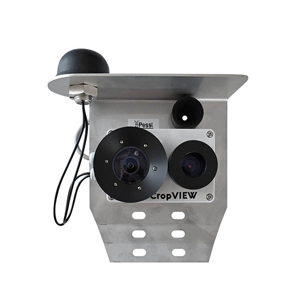 El CropVIEW®, es un sistema de cámara con electrónica integrada (cámara, módem, fuente de alimentación con panel solar). Se puede instalar en cualquier parte del campo que se necesite. En campo, el dispositivo es autosuficiente, ya que es alimentado por un panel solar y una batería. La cámara de 10 MP toma fotografías de alta resolución de su campo, cultivo o fruta.