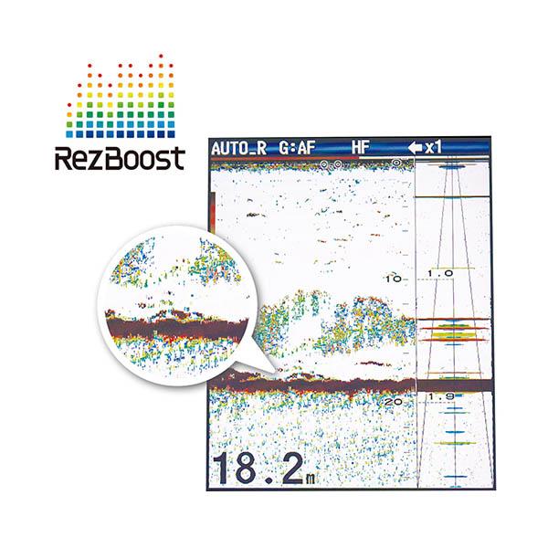 ¡Ecosonda de peces de alta resolución con tecnología RezBoost™!